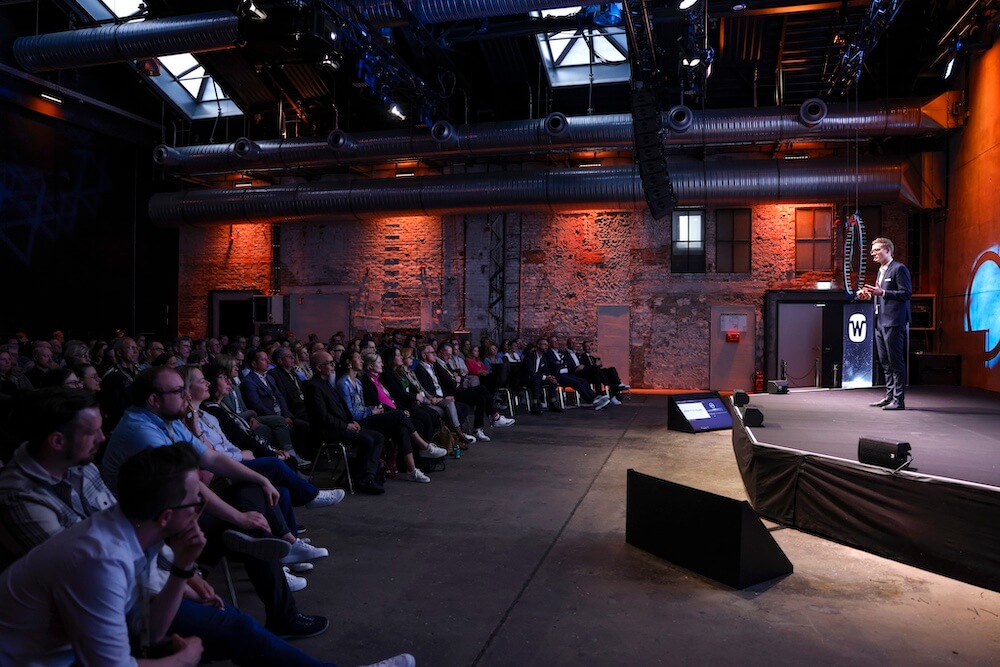 Bühnen-Präsentationen, dezentrale Info-Stände, ein aktiver Sound Walk als Outdoor Parcours sowie eine passende Big Bang Pyro-Inszenierung. Die Wagenhallen Stuttgart bilden hierfür den industriell innovativen Rahmen, abgerundet durch eine Keynote des KI Experten Dr. Hubertus Porschen.